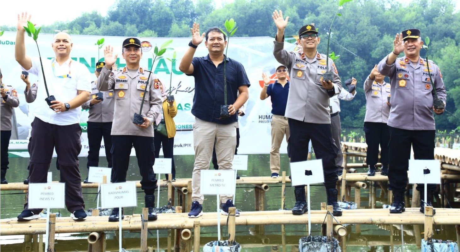 Jakarta. Divisi Humas Polri melakukan penanaman mangrove di Taman Wisata Muara Angke, Jakarta Utara. Penanaman mangrove tersebut dalam rangka memperingati Hari Ulang Tahun (HUT) ke-72 Humas Polri.